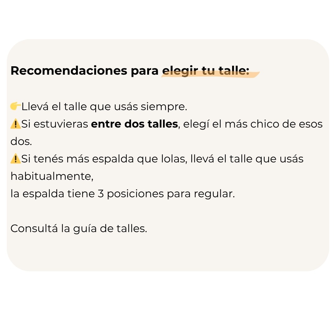 Si tenés alguna inquietud no dudes en contactar por whatsapp, podés enviarme la medida de espalda de algún modelo que tengas y que te queda bien, junto con tus medidas corporales para ayudarte a definir el talle.