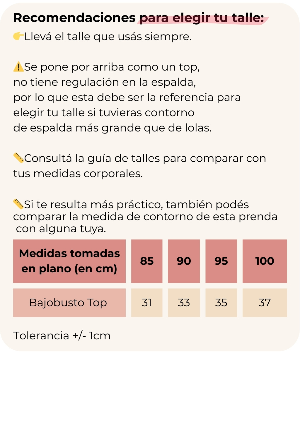 📏 El top viene del talle 85 al 100. Las bombis del S al XXL.