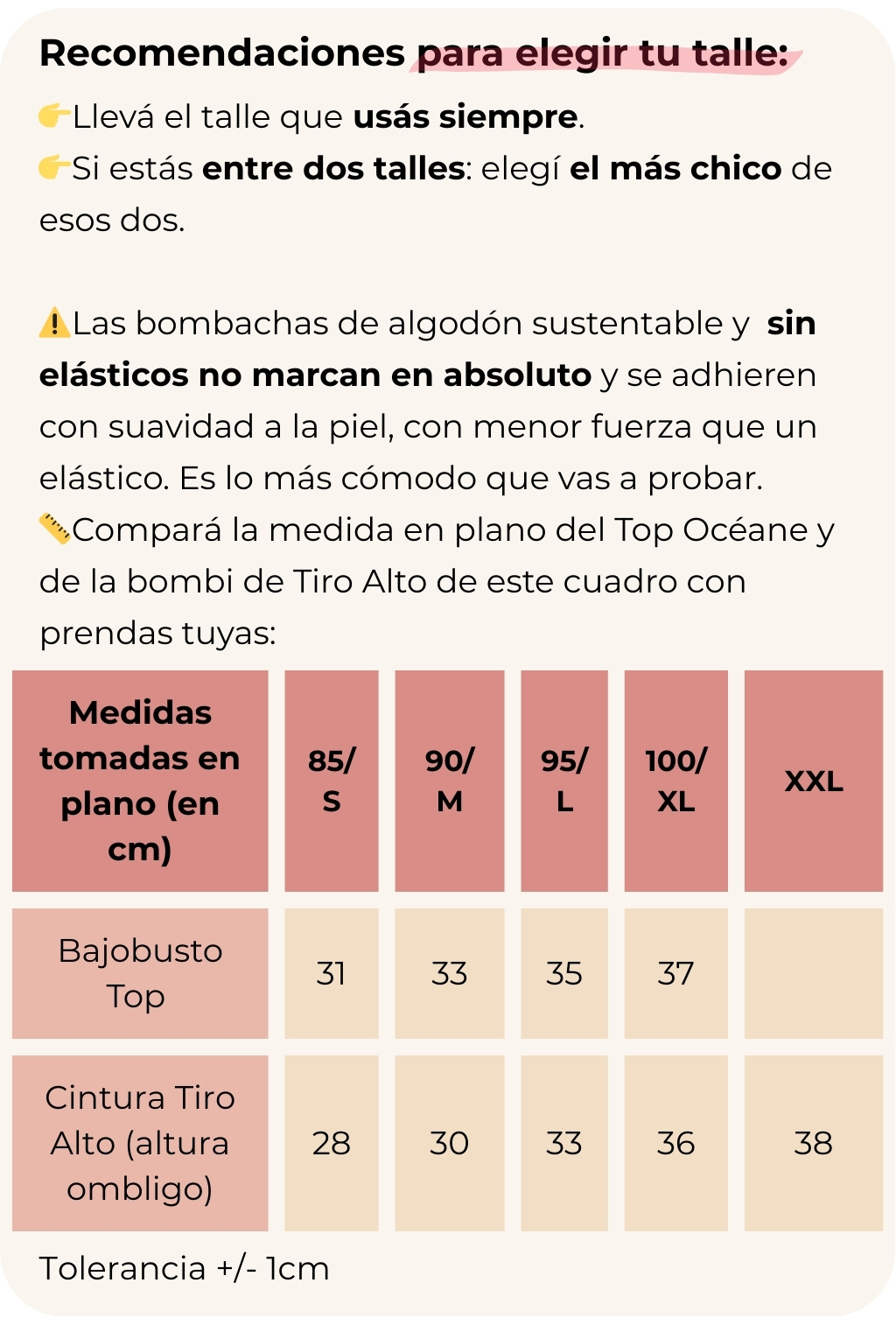 📏 El top viene del talle 85 al 100. Las bombis del S al XXL.