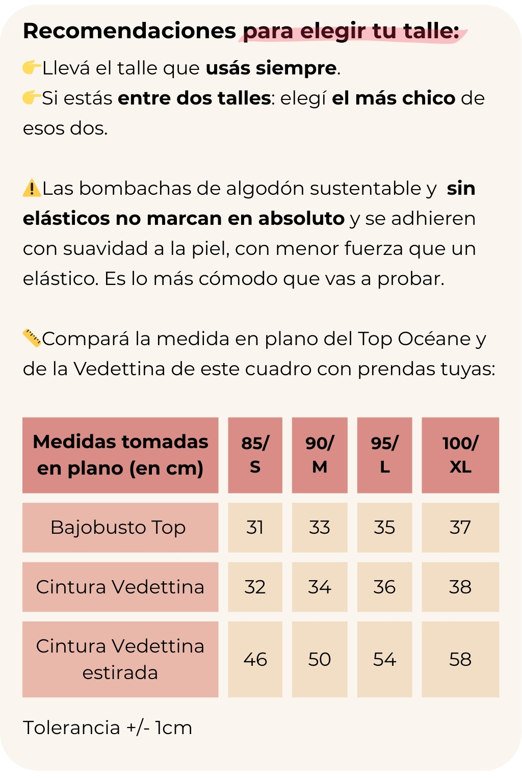 📏 El top viene del talle 85 al 100. Las bombis del S al XL.