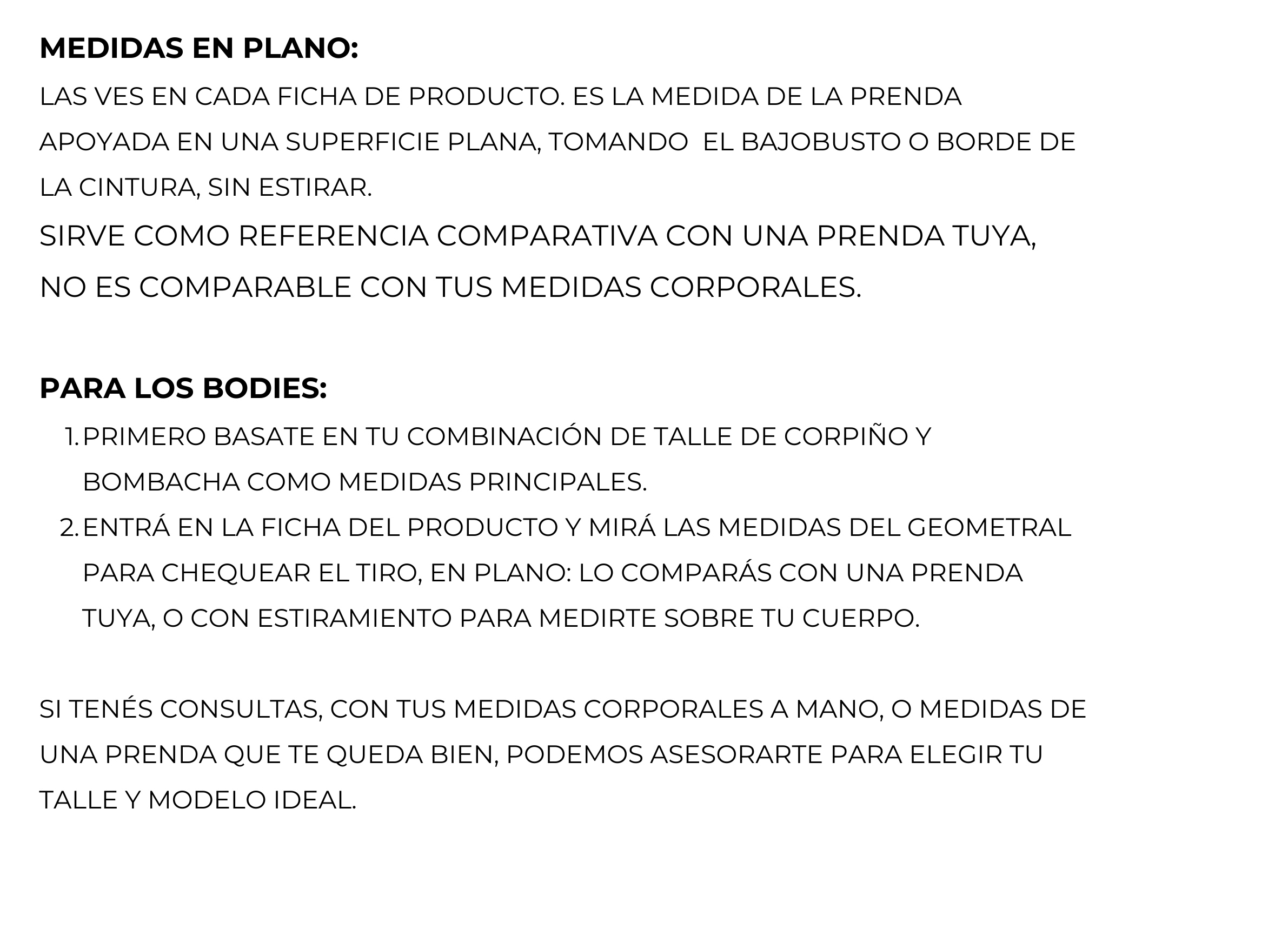 Es un modelo con calce absolutamente perfecto, levanta el busto, se ve muy sexy y se adapta a tu forma como necesitás.