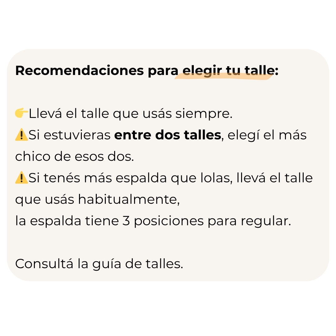 Si tenés alguna inquietud no dudes en contactar por whatsapp, podés enviarme la medida de espalda de algún modelo que tengas y que te queda bien, junto con tus medidas corporales para ayudarte a definir el talle.